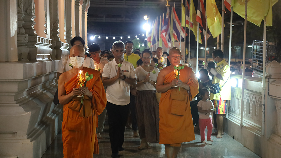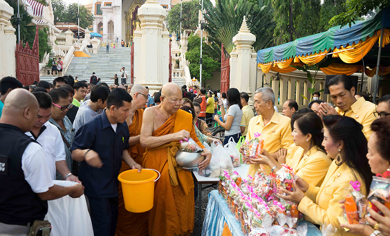 ภาพ: ประชาชนที่กำลังรอถวายส้มโอที่สถานีรถไฟนครปฐม